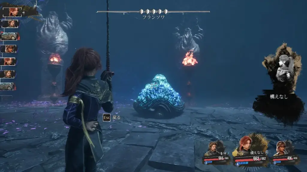 フランソワは石を渡さず、戦いになります。倒すとピクトス『強化先制攻撃』が手に入ります。