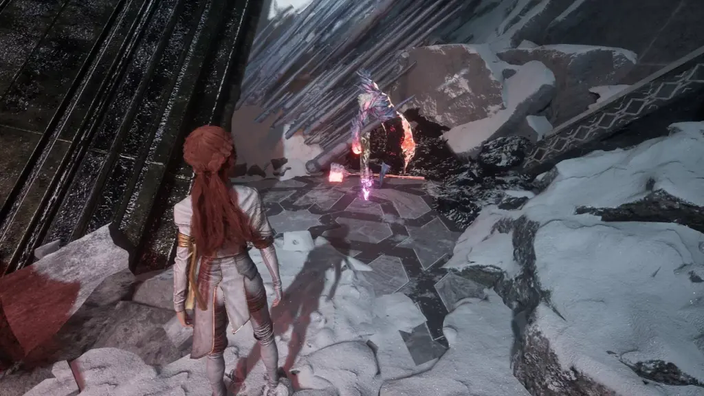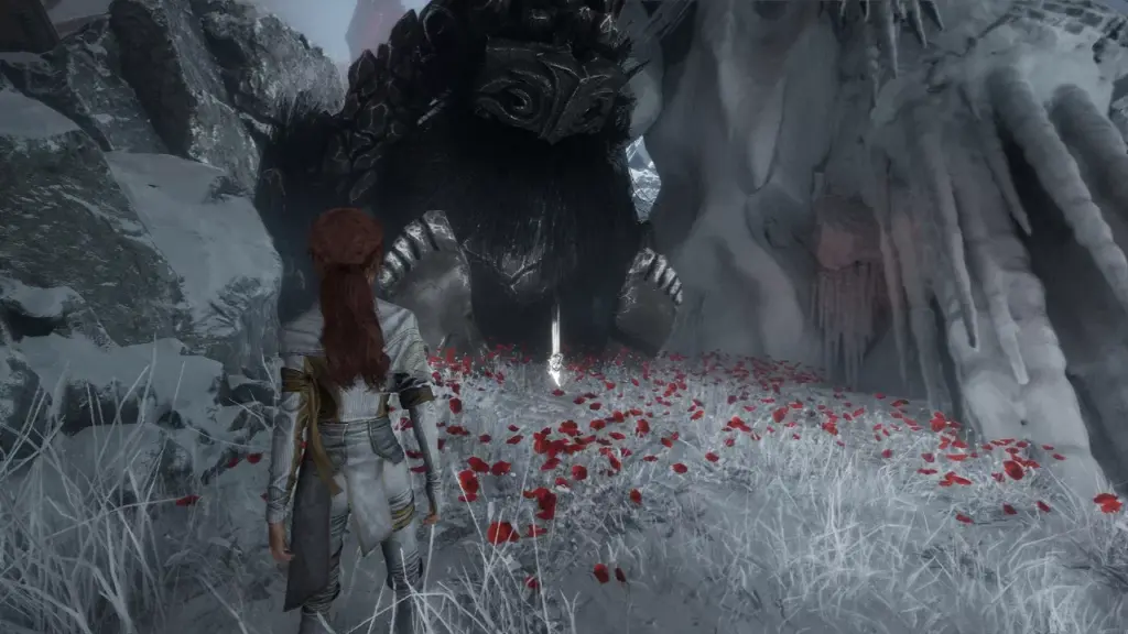 凍れる心のボス、ガルガントと戦うことになります。ガルガントは凍結を付与してくるので、途中で手に入れたピクトス『抗・凍結」』と(そのルミナ)を装備して戦うと良いです。また、ガルガントは火と氷が弱点なのですが、弱点属性で攻撃するとその属性が今度は耐性となりその都度弱点が入れ替わります。注意しましょう。入れ替わったのに同じ属性で攻撃するとダメージを吸収し回復されてしまいます。