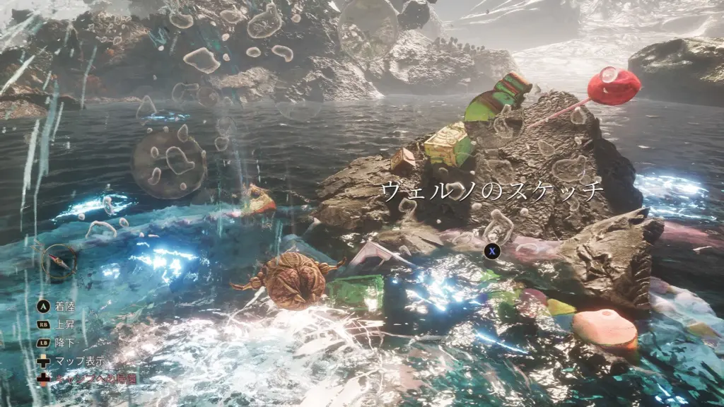 近くにある滝の裏側にクエストアイテム『おもちゃの船』があります。忘れず拾っておきましょう。