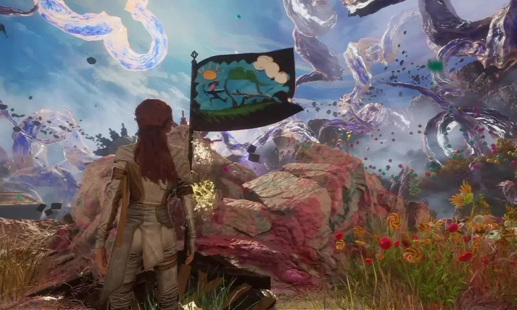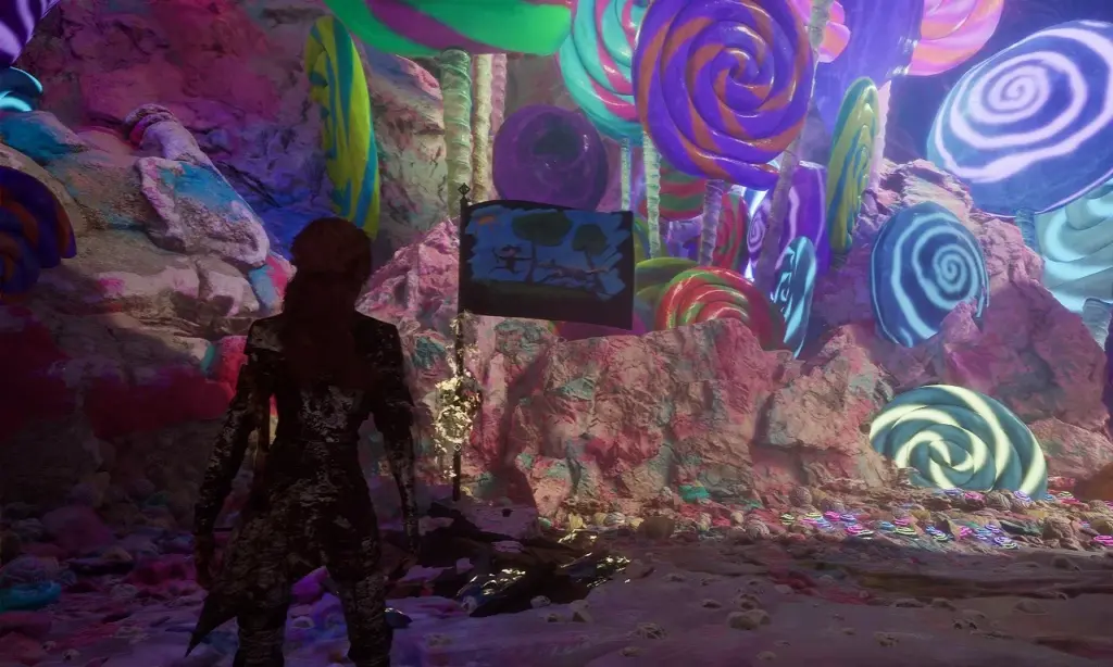 先に進むためにキャンディランドの遠征隊の旗のあった場所に戻ります。
