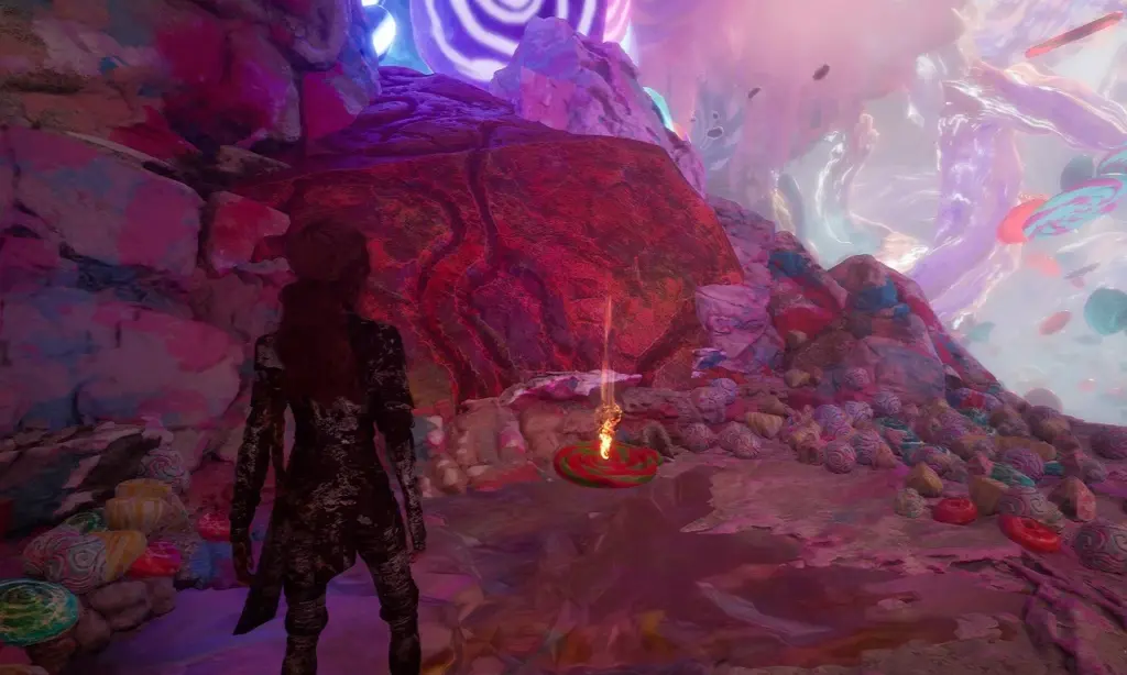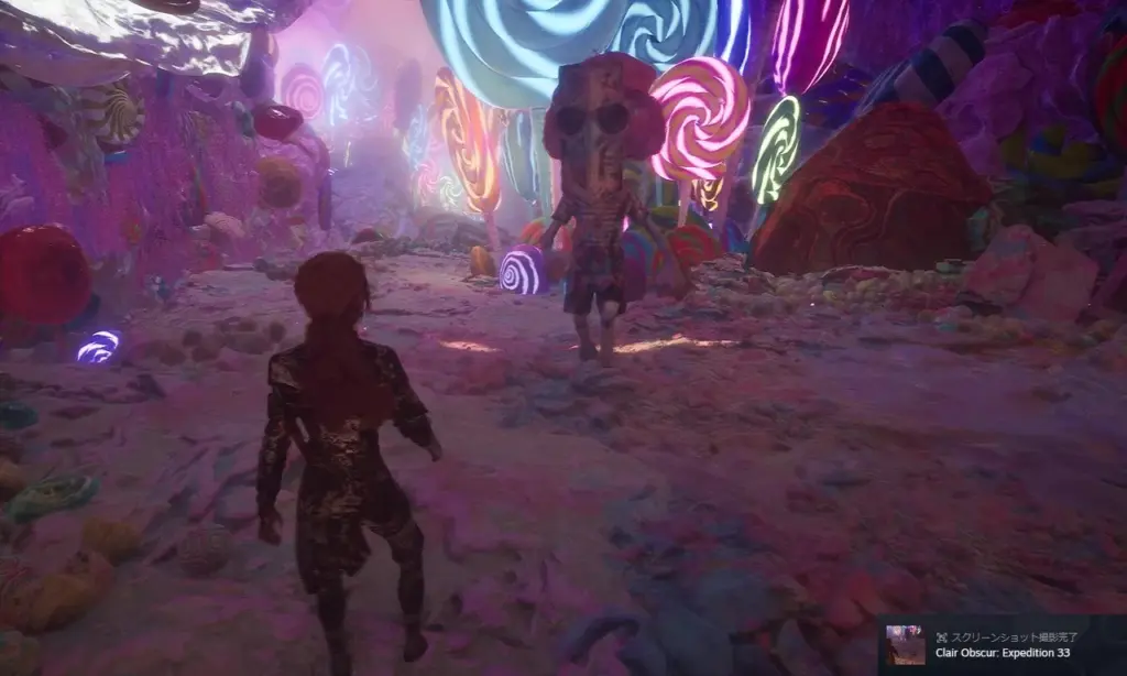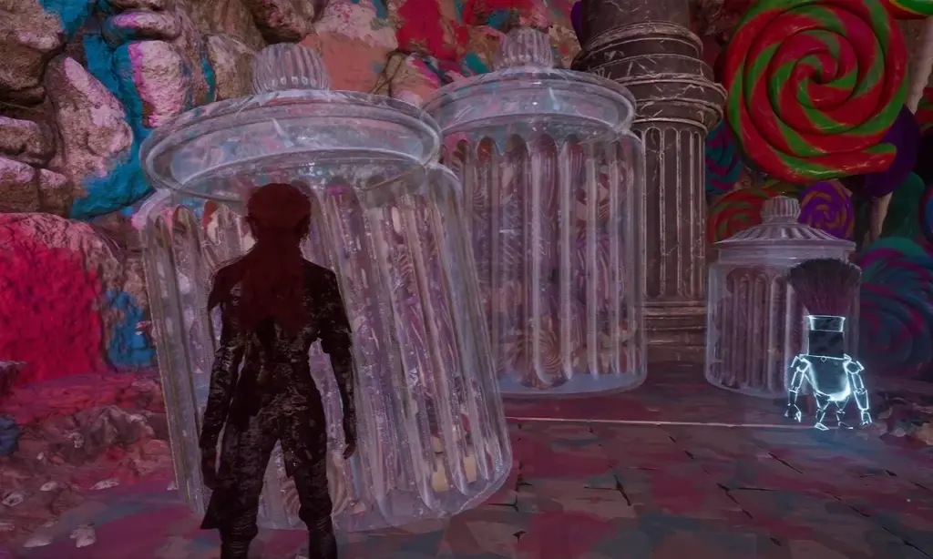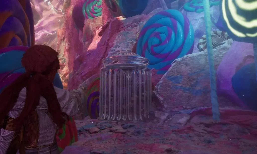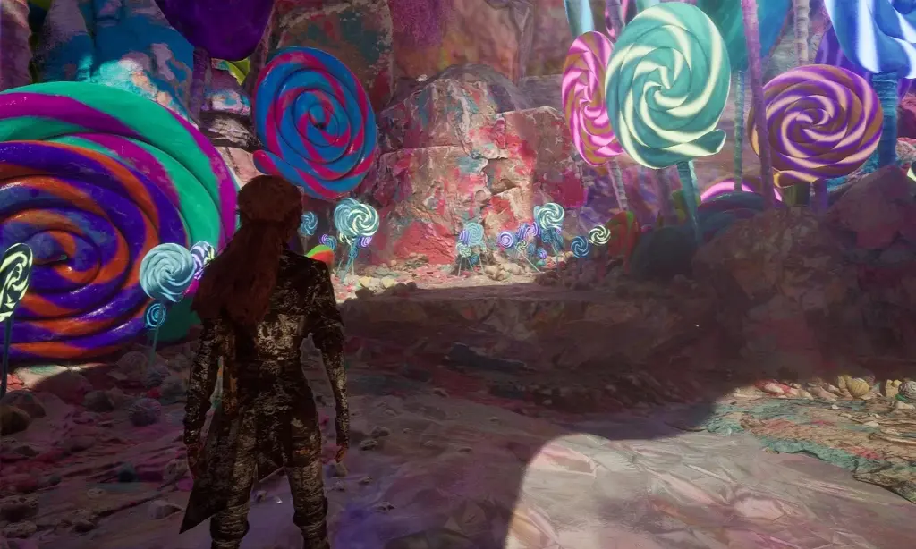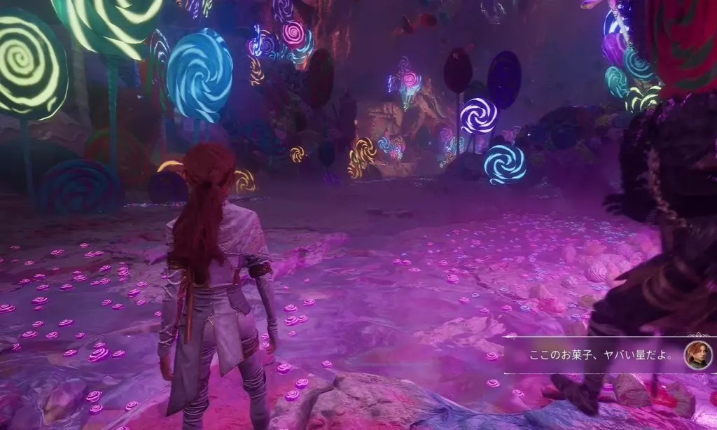 洞窟を抜けると、大量のお菓子のある場所につきます。