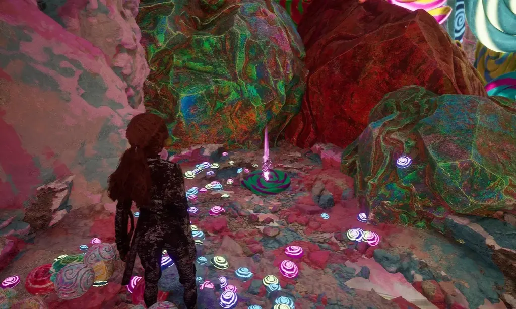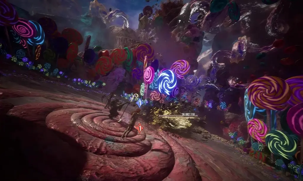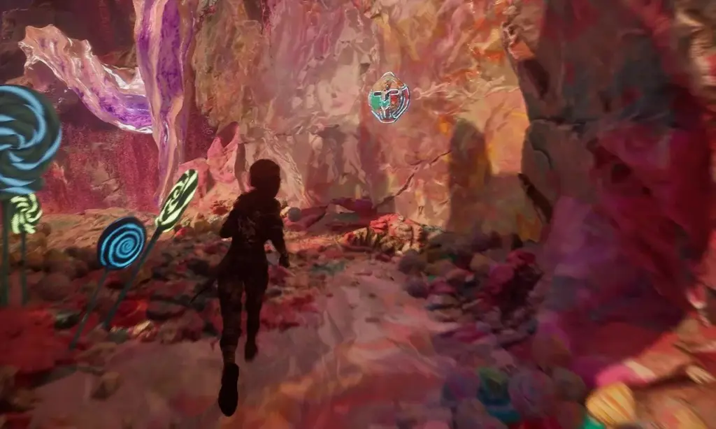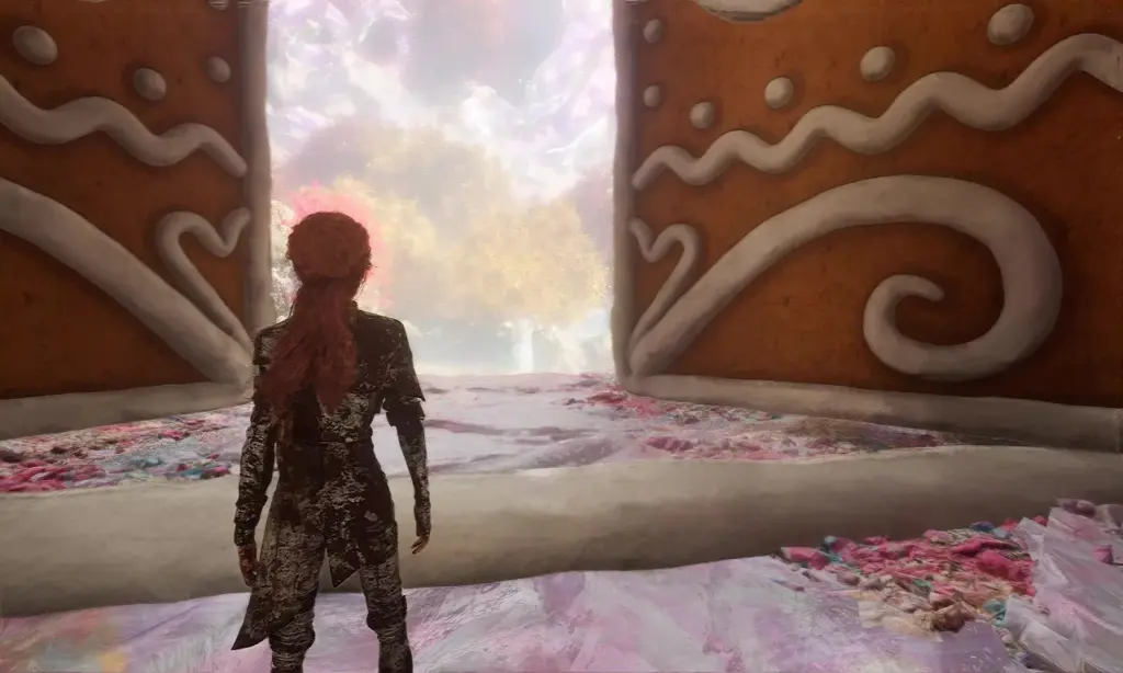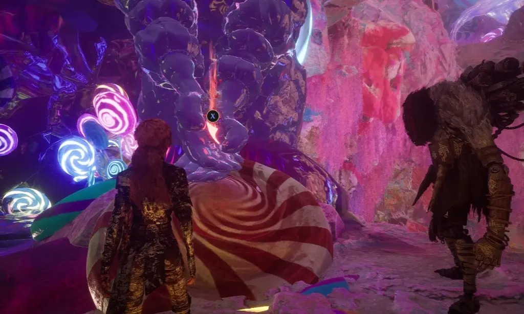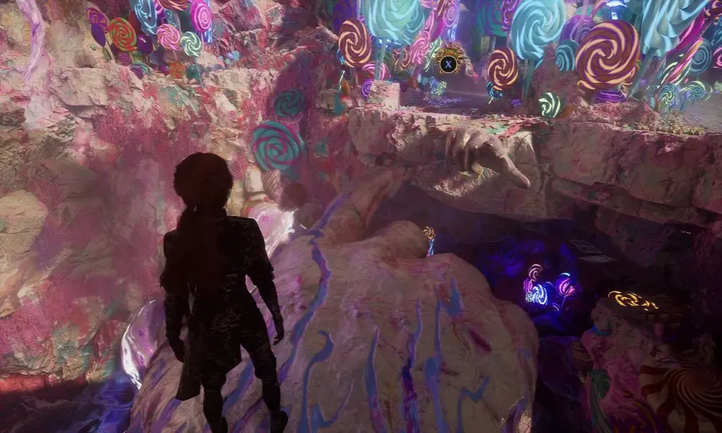 洞窟を抜けると、大量のお菓子のある場所につきます。