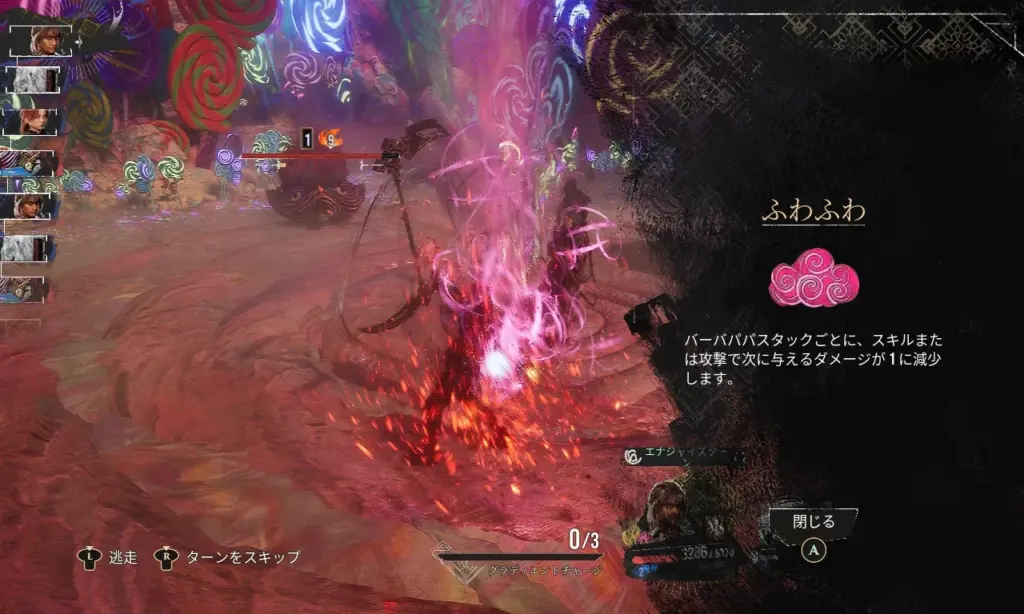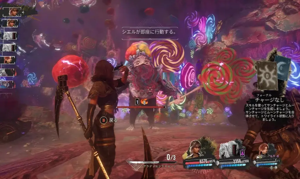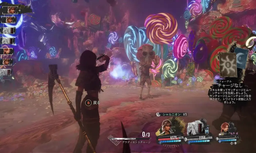 バルブシュセットが持っているキャンディーを攻撃して破壊すると「バルブシュセットは不満だ」とでて、「ふわふわ」を付与する攻撃を使ってくるので避けたほうがいいです。
