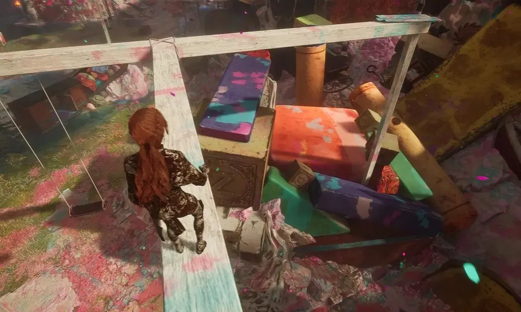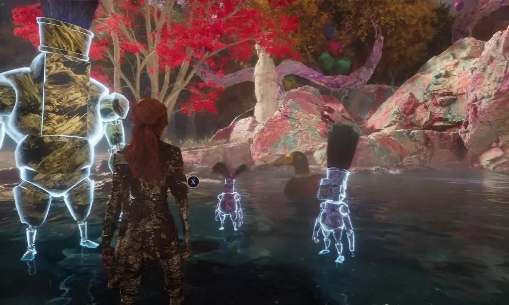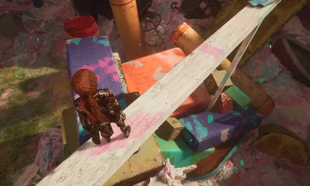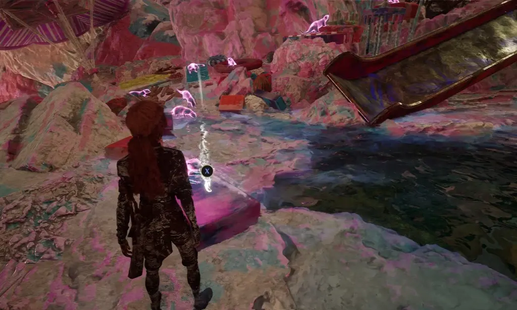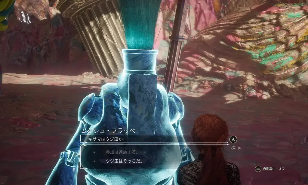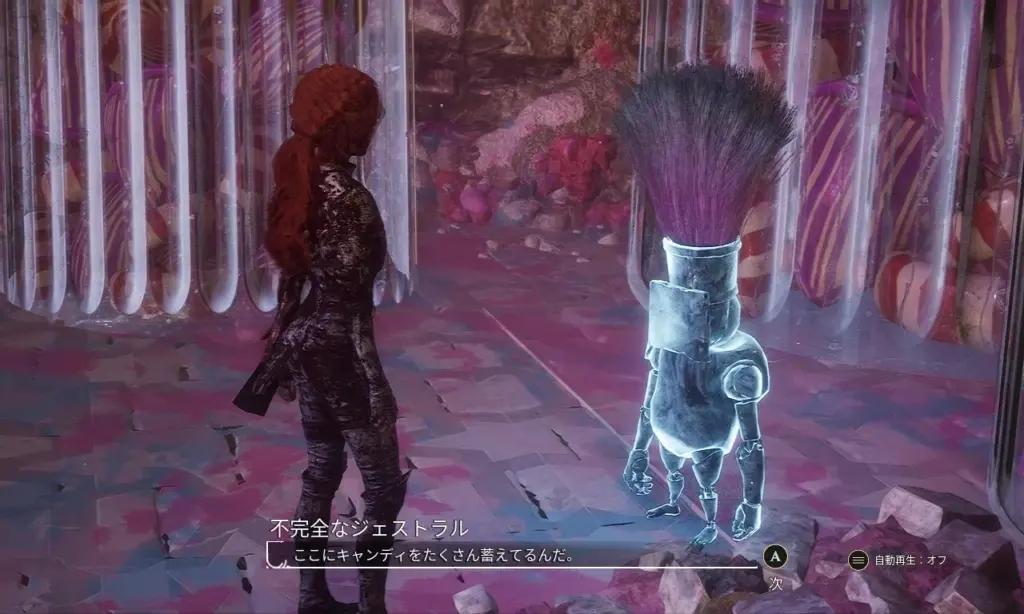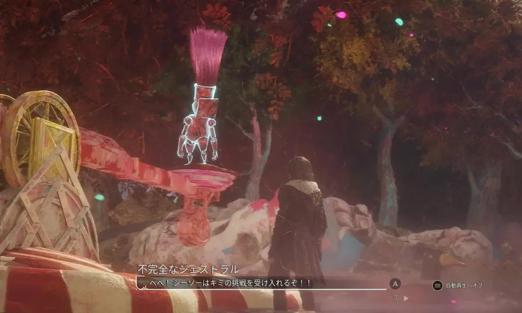 先に進むと遊園地の乗り物のようなものがある場所につきます。乗り物とその周囲にはジェストラル達がいます。