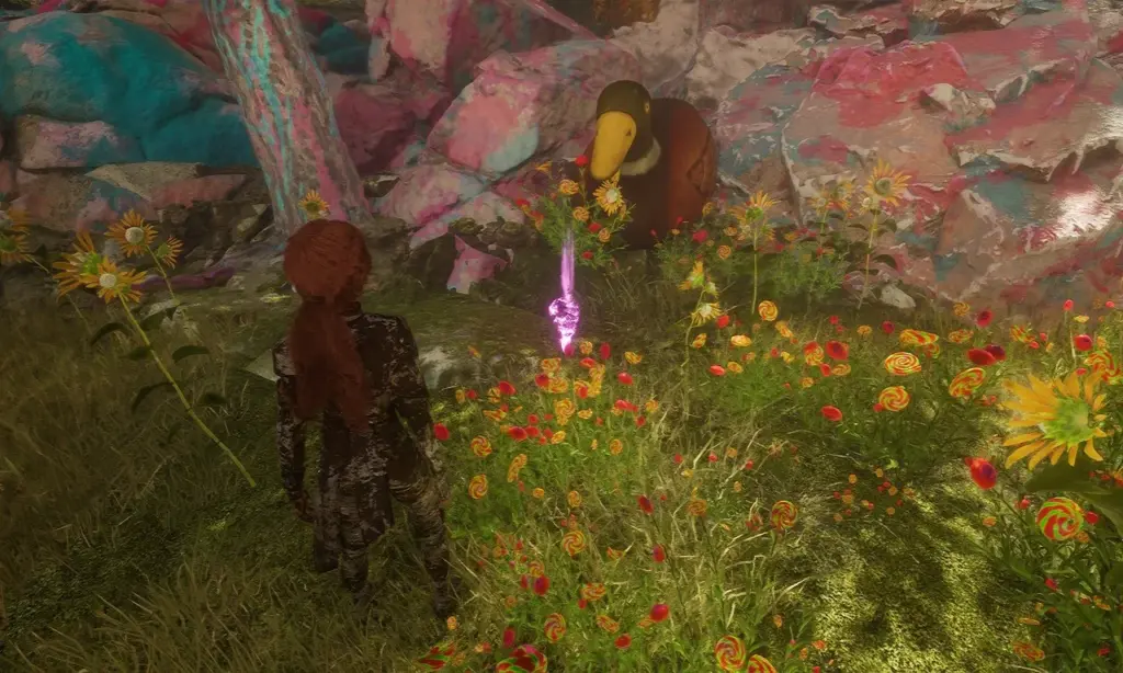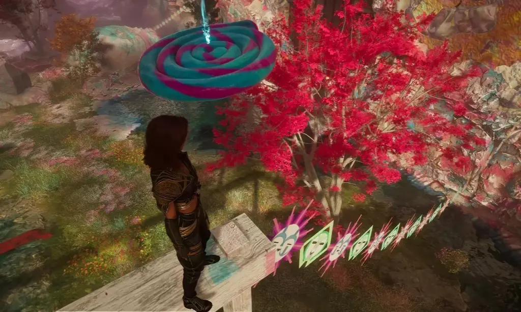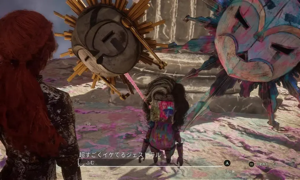 ジェストラルへの攻撃は全くダメージを与えられませんが、風船を撃てばダメージを与えることができ倒せます。ある程度連続で当てる必要があります。倒すとピクトス『トリガーハッピー』が手に入りますが、クロマを1000 奪われます。