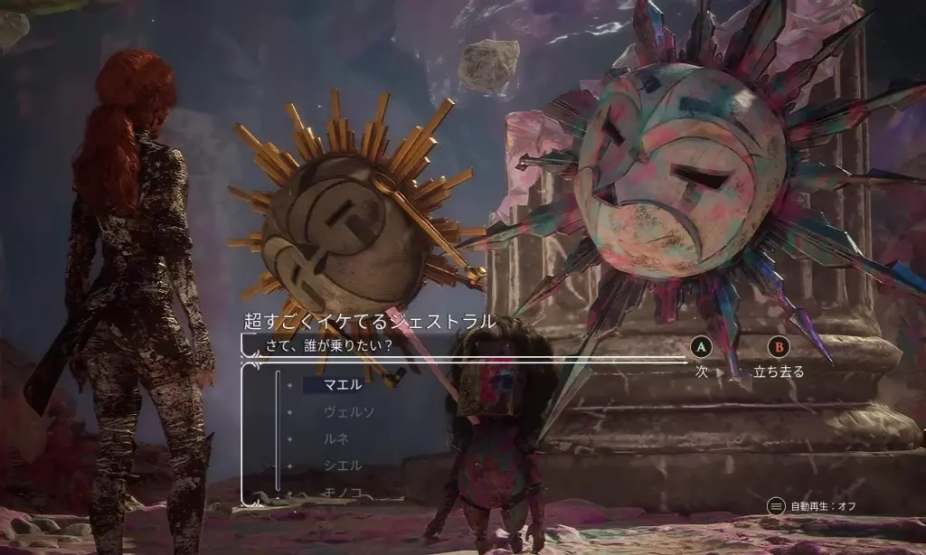 このミニゲームは少し曲者で、マーカーに合わせてジャンプすると失敗します。正しいジャンプのタイミングはジェストラルがシーソーに着地した瞬間です。4連続で成功すればクリアです。報酬としてピクトス『エンパワージャンプ』をもらえます。