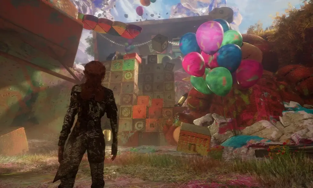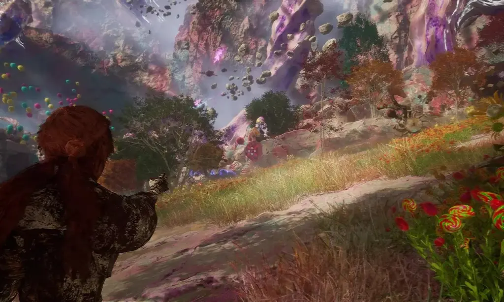 近くにいる風船をいっぱい持ったジェストラルの後ろに、リバイブティントの破片が落ちています。