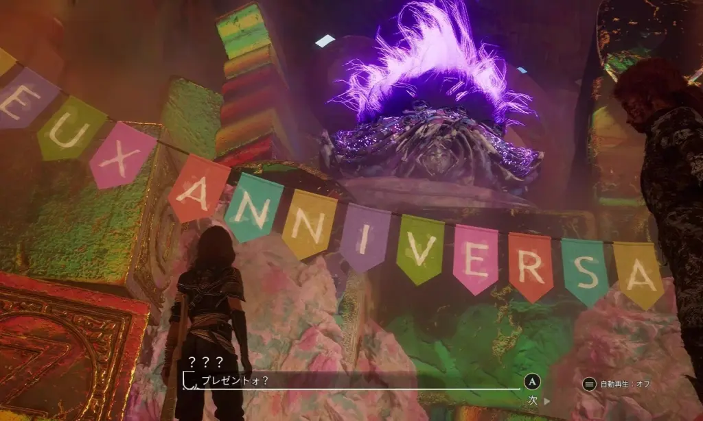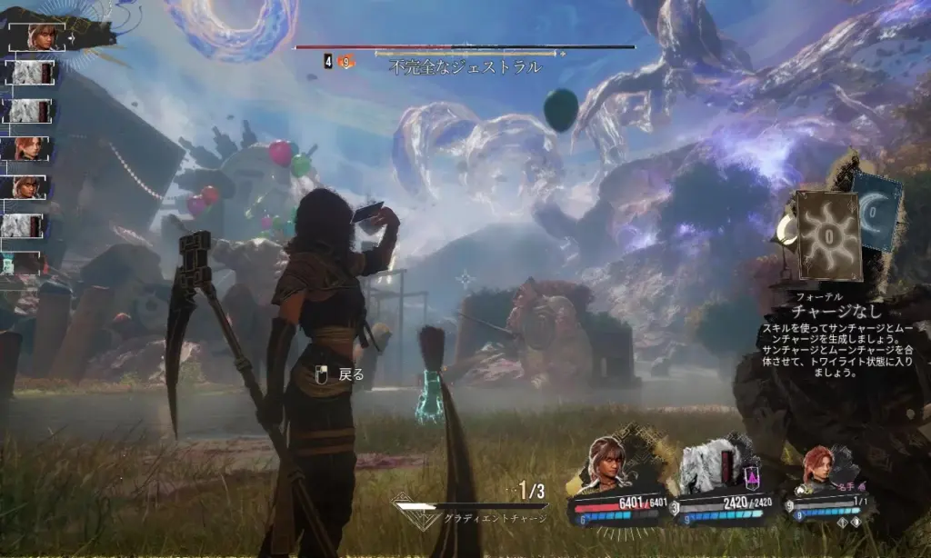 風船を持ったジェストラルがいます。風船を全部攻撃し破壊したあと話しかけると戦闘になります。