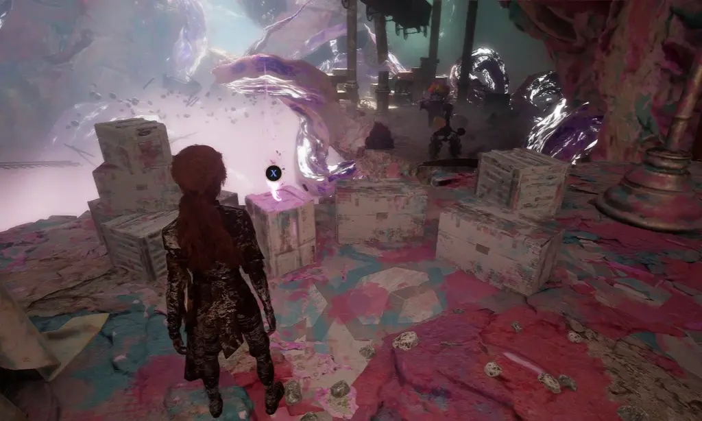 右の壁に沿って進むと、クロマティック・マシーナピエがいます。倒すと、壮大なクロマカタリストx2と、ルミナのカラーx5が手に入ります。