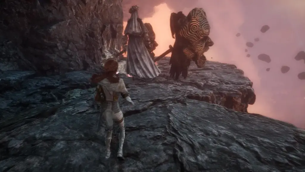 HPが半分以下になると「守りのオーラに包まれる」と表示され、以降は仮面の守護者の攻撃をくらったときに、相手に盾が追加されてしまいます。また攻撃パターンも変わります。パリィで確実に攻撃を受け流せない場合、回避を主体に戦った方が良いです。盾さえつけさせなければ楽に倒せます。倒すとピクトス『完全無欠』、まばゆいクロマカタリストx6、リコートが手に入ります。