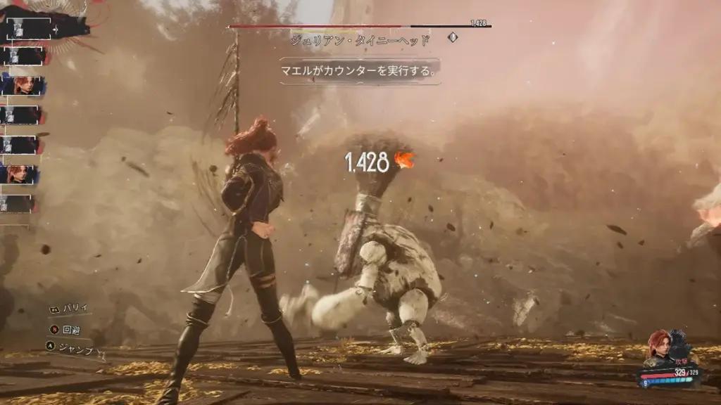 パリィとカウンターを使うと楽です。最後のジュリアン・タイニーヘッドは少し強いです。