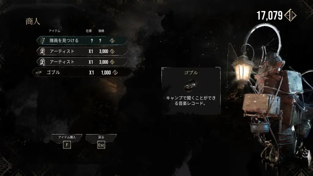 いにしえの聖域とジェストラルの浜辺のあいだにある黄色い森には、ジェストラルの商人がいます。髪型と音楽レコードの『ゴブル』を売っています。レコードの収集は実績(目利き)に関係しています。