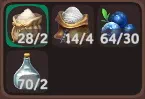 | ウェディングケーキ | ![]() | ![]() • 小麦粉 ×2 • 砂糖 ×4 • ブルーベリー ×30 • ウシのミルク ×2 • (Lumaエネルギー×58) |